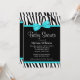 A trendy black and white zebra pattern with a aqua blue bow graphic is featured on this fun baby shower invitation. Perfect for a little girl or boy baby shower! Designs are printed illustrations/graphics - NOT ACTUAL RIBBON.