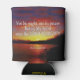 Modern stylish CHRISTIAN SCRIPTURE CAN COOLER showing a scenic background image with the verse from Zechariah 4:6, which reads NOT BY MIGHT, NOR BY POWER, BUT BY MY SPIRIT SAYS THE LORD ALMIGHTY. Underneath there is optional placeholder text which is CUSTOMIZABLE, so you can either personalise it by adding your name and/or message, or simply delete. This would make a great favour giveaway at special Church meetings, conferences or conventions, ministry gifts, stocking fillers at Christmas, for Birthdays and to encourage someone waiting for a breakthrough. Matching items available.
