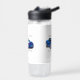 The bottle looks even better in real life. The ice cubes I put in lasts all day! I have my bottle with me all the time. It's summer and having something cold to drink feels amazing. With this bottle I always have something super cold. I have only tried the hot drink once and it lasted a long time as well. The color blue is a navy blue and the white printed on it is vibrant. It printed perfectly. I love my personalized smile water bottle.