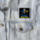 Honouring the fearless and charismatic President of Ukraine, Volodymyr Zelenskyy - this pin back button design features black and white photo cutout of the country's leader with blue and yellow "hope" "Hero" "Ukraine Strong" words.