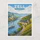 Retro illustrated vector vintage travel art design from Zell Germany. Tucked away on the Mosel River, in the middle of Europe's wine country, it’s a prime tourist destination full of beautiful scenery and German heritage.