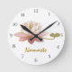 A simple clean modern elegant artsy unique clock with NAMASTE in gold and a Pink and Lavender Zen Lotus flower in the middle
