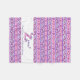 Personalised Z monogram name and meaning children's blanket. Pretty hand drawn initial letter Z monogram name and meaning girls blanket in purple, pink and white. Ideal for a personalised gift for a girl who has a name that starts with the letter Z. This example reads Zena Born of Zeus. Friendly, kind and welcoming or you can customise the text with your own name and message or words. Makes a unique girls, birthday or celebration gift. If you need help with your own personalised name please contact me. © Typographic letter Z flowers and hearts hand drawing and pattern uniquely created by Sarah Trett. www.sarahtrett.com for www.mylittleeden.com