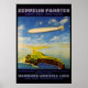 Vintage Zeppelin air travel poster for "trips over sea and land," booked by Hambugh Amerika Line.