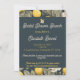 Embrace the timeless elegance of our enchanting bridal shower invitation. Awash in the delicate brushstrokes, the invitation transports you to the romance of a vintage garden party. It is adorned with luscious lemon branches and exquisite blossoms that gracefully frame the invitation. Charcoal grey, reminiscent of regal sophistication, mingles harmoniously with the soft allure of lemon yellow and the understated beauty of cream. These colours create a palette that is both refined and inviting. The design exudes an air of femininity and prettiness that is captivating. The lemon and floral motif, evoking the essence of springtime, adds a touch of natural charm. It's an invitation to cherish, much like the love you are gathering to celebrate.