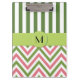 Zigzag, Chevron, Stripes, Pink, Green, Monogram Clipboard