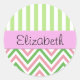 Zigzag, Chevron, Stripes, Pink, Green, Your Name Classic Round Sticker
