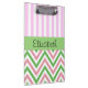 Zigzag, Chevron, Stripes, Pink, Green, Your Name Clipboard