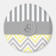 Zigzag, Chevron, Stripes, Yellow, Grey, Monogram Magnet