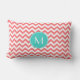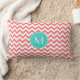 Zigzag Coral and Aqua Custom Monogram Lumbar Cushion