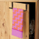 A stylish Kitchen Towel or Tea Towel, with a chevron pattern in Magenta Pink and Bright Orange.