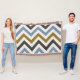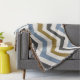 Zigzag Large Pattern Gold Grey & Blue on Cream Throw Blanket