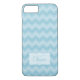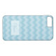 Modern zig zag patterned iphone cover in blue hues. Customise this bold patterned case cover with your name and your family initial or monogram. Currently reads Eleanor J. Ideal personalised gift for girls and women. Design by Sarah Trett.