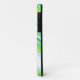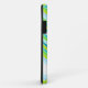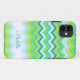 Modern zig zag patterned iphone cover in teal, green, yellow and blue hues. Customise this bold patterned iphone case cover with your name and your family initial or monogram. Currently reads Michelle R. Ideal personalised gift for girls and women. Design by Sarah Trett.