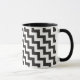 A stylish Ringer Mug with a diagonal chevron pattern in trending Black and White zigzags.