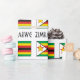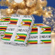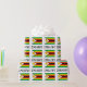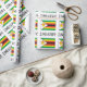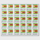 The Zimbabwean Flag has seven stripes. One is black and in the centre. Two are red and are top and bottom of the black stripe. Yellow stripes border the red ones, with green bordering each yellow stripe. A white triangle shows on the left with a red star and a yellow Zimbabwean bird. In this design the flag shows with the word ZIMBABWE below in black letters. Looks cool on this wrapping paper.