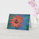 This note-card features an interesting squiggly zinnia against a gorgeous blue and green background!