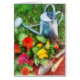 Designs by Susan Savad -- The growing season is almost over, but these hardy zinnias have just been planted and are still beautiful in the autumn. The gardener will come by any moment to put away his watering can, trowel and his weeding fork.