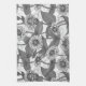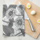 Zinnias, monochome on white tea towel