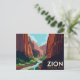 Stunning vintage-style travel poster illustration of the iconic deep canyon of Zion National Park, Utah, featuring the Virgin River winding through towering red rock walls (The Narrows). Captures the dramatic scale and beauty of this popular park. Ideal for hikers, Utah enthusiasts, and collectors of retro WPA national park art.