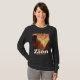 I love this shirt. I had written to the artist asking her if this picture was available on a shirt, and she wrote me back telling me where I could find the shirt. These shirts can be custom made to have a different saying. I loved this saying and went with it. The artist wrote me back later to tell me that she had seen my order go through. How's that for service? Pretty special. It's just as displayed. Perfect!