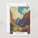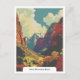 Discover the stunning landscapes of Zion National Park in Utah with this vintage postcard showcasing its majestic red rock formations, deep canyons, and vibrant desert flora. Known for its incredible hiking trails, including the iconic Angels Landing and The Narrows, Zion offers outdoor enthusiasts breathtaking views and adventures in a unique geological wonderland. This retro-style postcard captures the essence of Zion, inviting you to explore the natural beauty and thrilling experiences this remarkable national park has to offer