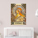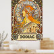 Vintage art nouveau poster of the Zodiac. Profile portrait of a woman with long flowing hair surrounded by the signs of the constellations. From an original 19th century (1896) advertisement by Alfons Mucha. All Rights Reserved © 2014 padre art
