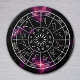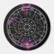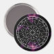 An elegant and modern zodiac magnet, featuring a circular astrological calendar with a deep space background and beautiful purple nebula. The zodiac circle shows all 12 star sign symbols and their constellations. Makes a lovely astrology themed gift.