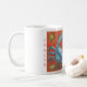 Cancer, the crab, walks on a beach covered with stars. Water sign, June 22 - July 23 (there may be a variation in the dates). Mug with an orange, blue and yellow customisable design for you to personalise with your own text, images and ideas. Available in all style options. An original coloured pencil and metallic ink drawing by Jess Perry.