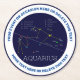 Zodiac Constellation Aquarius or water bearer. The colours of the stars are roughly real. Stars' and space objects' names. The Water Bearer is associated with Deucalion, who built a ship with his wife Pyrrha to survive the great flood. He also is identified as Ganymede, the son of Trojan king Tros, who was taken to Mount Olympus by Zeus to act as a cup-carrier to the gods. Neighbouring Aquila represents the eagle that snatched the young boy. Aquarius is the Zodiac constellation. The Sun transits the area along the Ecliptic line between January 21 and February 18. Unique, one-of-a-kind, elegant coaster for anyone. Customisable. You can change or delete two template texts. You can transfer this design to a variety of other products. Just choose the product from the scrollable option "Transfer design to a product". Do not forget to use the "Personalise", or "Edit design" (as the case may be) button, or the blue link "Details" --> "Click to customise further" --> "FILL/FIT" to ADJUST THE DESIGN TO THE SIZE AND SHAPE of the product, to rotate it, to change the position, type, colour of the font, or to add your own text from the scratch. Just be creative, customise one, buy, enjoy, and be happy.