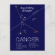 Zodiac Constellation Cancer or crab. The colour of the stars is roughly real. Star and space objects' names. In classic Greek mythology, the goddess Hera sent a crab to aid Lernaean Hydra serpent in her hand-to-hand battle with Heracles. But Heracles killed the crab with his foot. As a reward for its service, Hera placed the crab's image in the sky though in a region without bright stars, because the crab failed to accomplish its important mission. Cancer is a zodiac constellation. The Sun transits the area along the Ecliptic line between June 22 and July 22. Unique, one-of-a-kind, elegant, funny birthday greetings postcard. Customisable. You can change the image, and you can change or delete the template "Happy birthday, Christopher!" text. You can transfer this design to a variety of other products. Just choose the product from the scrollable option "Transfer design to a product". Do not forget to use the "Personalise", or "Edit design" button, or the blue link "Details" --> "Click to customise further" --> "FILL/FIT" to ADJUST THE DESIGN TO THE SIZE AND SHAPE of the product, to rotate it, to change the position, type, colour of the font, or to add your own text from the scratch. Just be creative, customise one, buy, enjoy, and be happy.