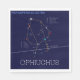 Zodiac Constellation Ophiuchus or snake bearer. The colours of the stars are roughly real. Stars' and space objects' names. Ophiuchus, the snake bearer, is associated with the Greek legendary doctor Asclepius, son of the god Apollo, who was said to be able to bring people back from the dead with his healing powers. Asclepius learned how to do this after seeing one snake bringing healing herbs to another. According to other reliable ancient sources, Asclepius was raised by Chiron, the centaur (Centaurus constellation), who taught him the art of healing. Ophiuchus is considered to be the thirteenth sign in addition to the twelve signs of the tropical Zodiac. The Sun transits the area along the Ecliptic line between November 30 and December 18. Unique, one-of-a-kind, elegant paper napkin for anyone. Good for the observatory snack bar, for the space research institute, agency, or for the dinner event at the international congress on matters of astronomy and astrophysics. Customisable. You can change or delete the template text PER ASPERA AD ASTRA. You can transfer this design to a variety of other products. Just choose the product from the scrollable option "Transfer design to a product". Do not forget to use the "Personalise", or "Edit design" (as the case may be) button, or the blue link "Details" --> "Click to customise further" --> "FILL/FIT" to ADJUST THE DESIGN TO THE SIZE AND SHAPE of the product, to rotate it, to change the position, type, colour of the font, or to add your own text from the scratch. Just be creative, customise one, buy, enjoy, and be happy.
