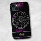 An elegant and modern zodiac iPhone case, featuring a circular astrological calendar with a deep space background and a beautiful purple nebula. The zodiac circle shows all 12 star sign symbols and constellations. An astrology themed gift that’s easy to personalise, with a space for a monogram and name to add that unique touch.