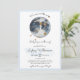 Over the moon baby shower invitation features moon and stars. The zodiac sign for the month baby is due can be chosen. Book for baby request on back with moon phases and stars.