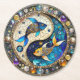 Zodiac - Pisces Fish Yin and Yang Round Paper Coaster