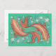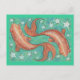 Pisces, the fish, swimming in a star-filled river. Water sign, February 20 - March 20 (there may be a variation in the dates). Postcard with an orange, blue and green customisable design for you to personalise with your own text, images and ideas. An original coloured pencil and metallic ink drawing by Jess Perry.