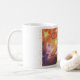 Sagittarius the archer stands against a sky filled with shining stars. Fire sign, November 23 - December 21 (there may be a variation in the dates). Mug with a gold, orange, purple and blue customisable design for you to personalise with your own text, images and ideas. Available in all style options. An original coloured pencil and metallic ink drawing by Jess Perry.