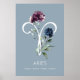 Modern, floral design of the Aries Zodiac symbol, which depicts a Ram's curved horns.