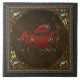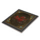 We are proud to offer this high quality ceramic tile featuring the fifth sign of the Zodiac: Sagittarius. This magnificent symbol is depicted with carved gold and embossed jewelled red lacquer against a leather background. The four suns struck in gold represent the totality of the seasons. At the centre of each sun is the embedded Sagittarius birthstone: turquoise (depicted).