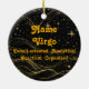 A circular ornament with your Zodiac sign illustration on one side and a name on the other side. The name you chose, name of the zodiac sign and four well known traits of that sign will be printed on the other side of the ornament.