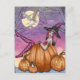 This is a painting originally done in watercolors by me, Nikki Burnette! Meet Zoe, a very fun witch who's sitting in a pumpkin with stars and moons on her striped stockings. She also has an owl and kitty friend who's popping out of a pumpkin. I've customised the image to create this beautiful postcard! I hope you enjoy it.