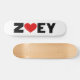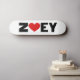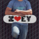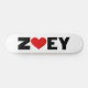 The name Zoey with the letter o replaced with a red love heart. The colours can be changed.