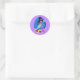 Zola is an enchanting and magical water creature known as a mermaid. Her black, lavender and purple hair is in a ponytail and decorated with a white and purple pearl crown with purple seashells sitting on the pearls. She has a lovely top of purple seashells, lovely purple tail and fins, and a purple pearl belt. Zola the mermaid is petting her dolphin friend and holding a seashell as they play near the sandy golden ocean floor that is decorated with green seaweed plants, red corals, purple sea urchins that blow bubbles, and lovely seashells of white and brown stripes.