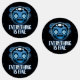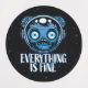 Vector cartoon illustration of a zombie astronaut with big eyes wearing a space helmet with a cracked glass shield in shades of blue with Everything Is Fine text. Tags: astronaut, cosmonaut, helmet, zombie, space, spaceman, monster, cadet, corpse, dead