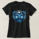 Vector cartoon illustration of a zombie astronaut with big eyes wearing a space helmet with a cracked glass shield in shades of blue. Tags: astronaut, cosmonaut, helmet, zombie, space, spaceman, monster, cadet, corpse, dead