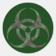 Warn everyone with this sticker: That you might be infected! That the soda can is toxic! To stay away from your snacks! This sticker features a light green bio-hazard symbol on a dark green background. Think of the fun that you can have with this! Not just for zombies!