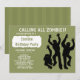 Calling all zombies for this cool birthday party. Invite your friends to a zombie themed birthday party, or just a zombie party. Silhouette of 3 zombies waving their hands. Great invitation for the zombie lover in your life.
