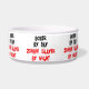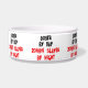 I absolutely love this product! I was a little concerned prior to buying it, but I was blown away by the quality of the item. The bowl is sturdy and arrived clean without any damage. The printing was crisp and clean and looks Better than I hoped! My dogs immediately knew these were for them and get very excited to pose with their new bowls! Definitely recommend and will purchase more in the future! The printing is crisp and well done. It looks absolutely beautiful on the bowl, and I can tell that it’s going to hold up well over time.