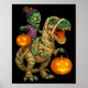Zombie Girl Riding Mummy T Rex Halloween Kids Tric Poster