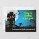 The scene is nighttime. The full moon rises behind a haunted house and bats fly away. Suddenly the undead rise from the graveyard and walk. The reverse reveals the zombie coming closer with event information wrapping around the creature. This invitation is perfect for a Halloween party or the next zombie invasion. Available with matching products.